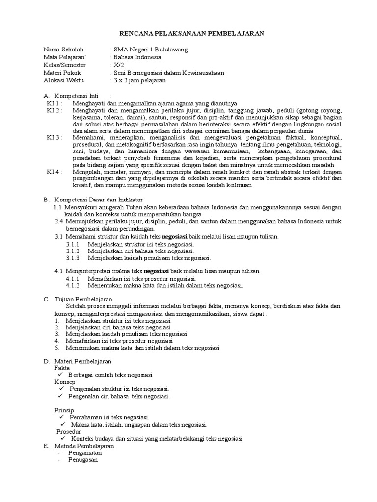 Sma Pilpay Rpp Teks Perundingan Kelas X Kd 3 10 4 10 3 11 4 11