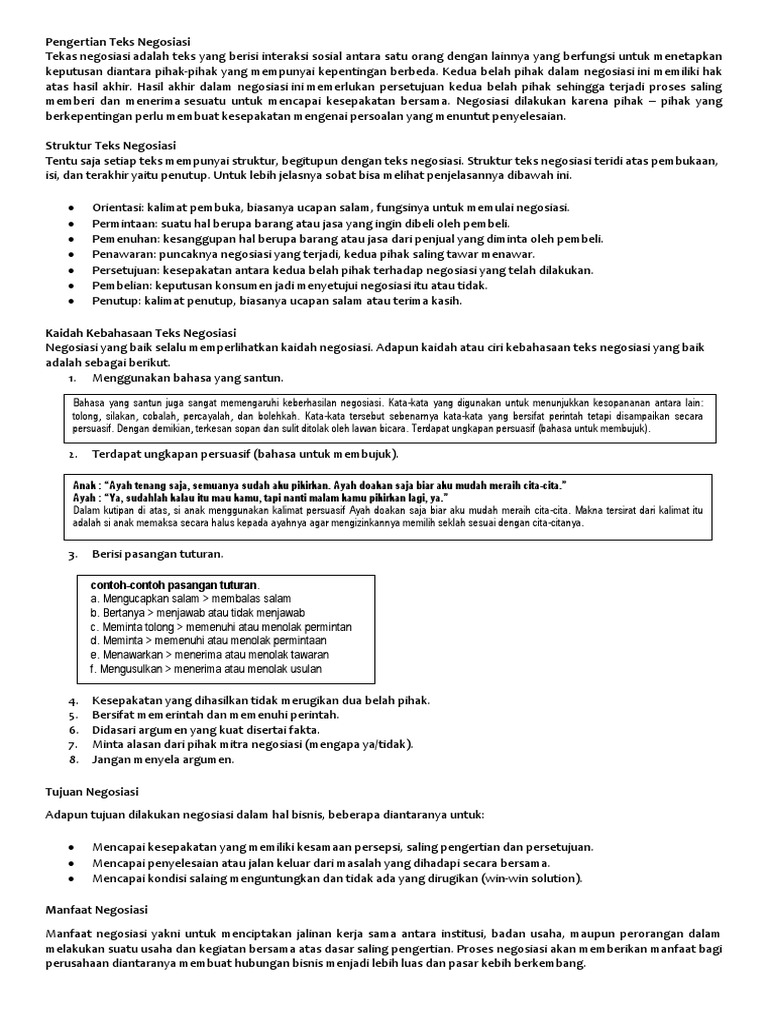 Pahamifren itulah ulasan materi Bahasa Indonesia Kelas 10 tentang Teks Negosiasi Beserta Strukturnya. Khusus untuk kamu yang ingin mendapatkan akses materi pelajaran SMA secara online kamu. TEKS NEGOSIASI LEMBO ADE.
