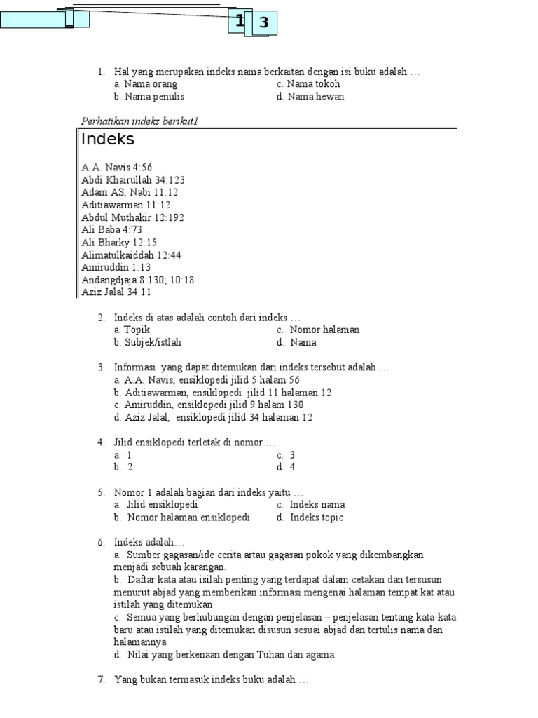 Contoh soal indeks beserta jawabannya. Perhatikan kutipan indeks buku berikut. Contoh soal indeks buku beserta jawabannya.