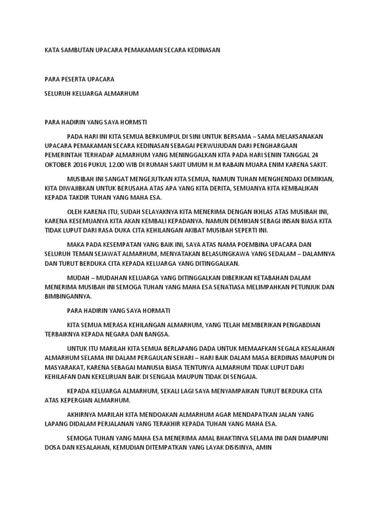 Kata Sambutan Upacara Pemakaman Secara Kedinasan