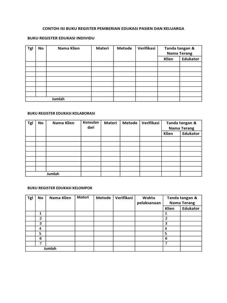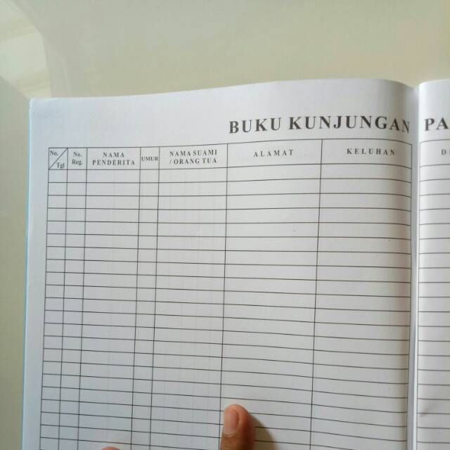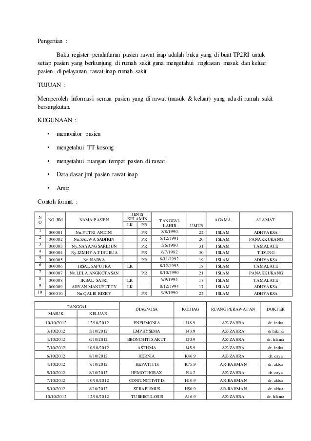 Contoh buku register pasien. Buku Register Kunjungan Rumah adalah buku pencatatan yang dipakai oleh suatu unit yang melakukan kunjungan rumah tentang data semua pasien yang akan dan telah dikunjunginya seperti. Share to Twitter Share to Facebook Share to Pinterest. -Pasien dan keluarganya diterima dengan ramah.