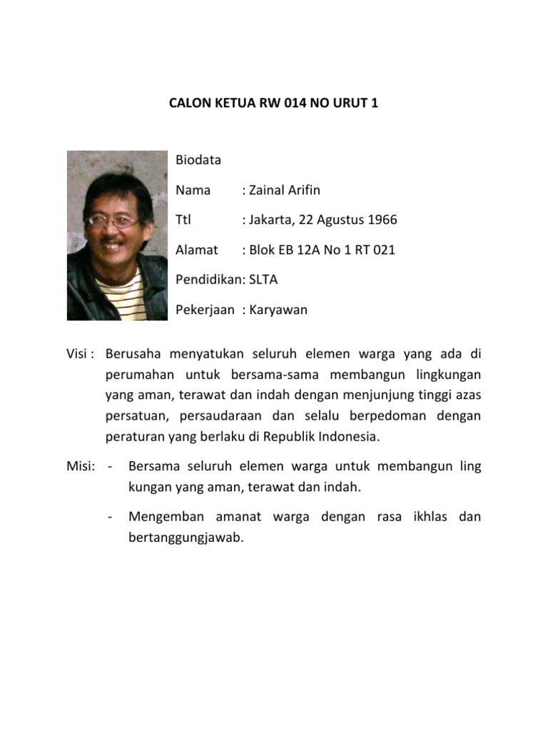 Contoh visi dan misi calon ketua rw. 013 taman kalijaga permai kelurahan kalijaga proses pemilihan calon ketua rw. Jakarta 22 Agustus 1966. Bisa kita alih fungsikan kita berikan kepada masyarakat tingkat bawah.