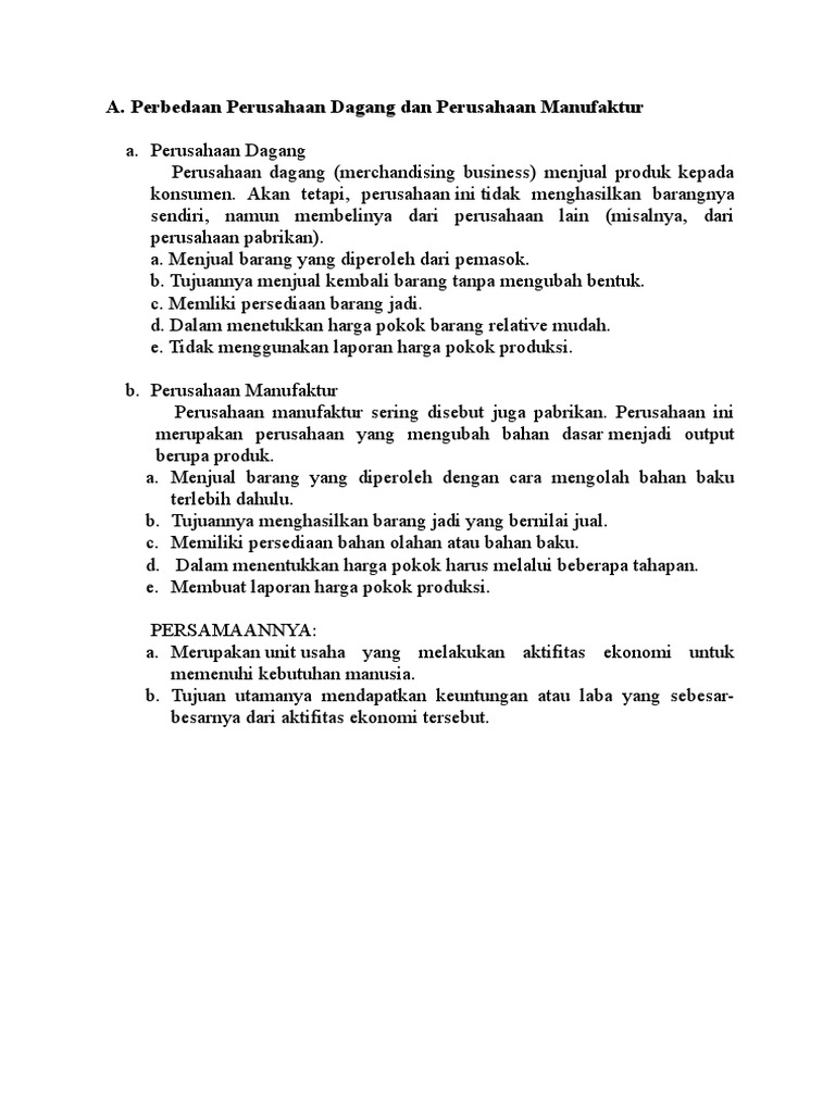 Perbedaan Dan Persamaan Perusahaan Jasa Dagang Dan Manufaktur