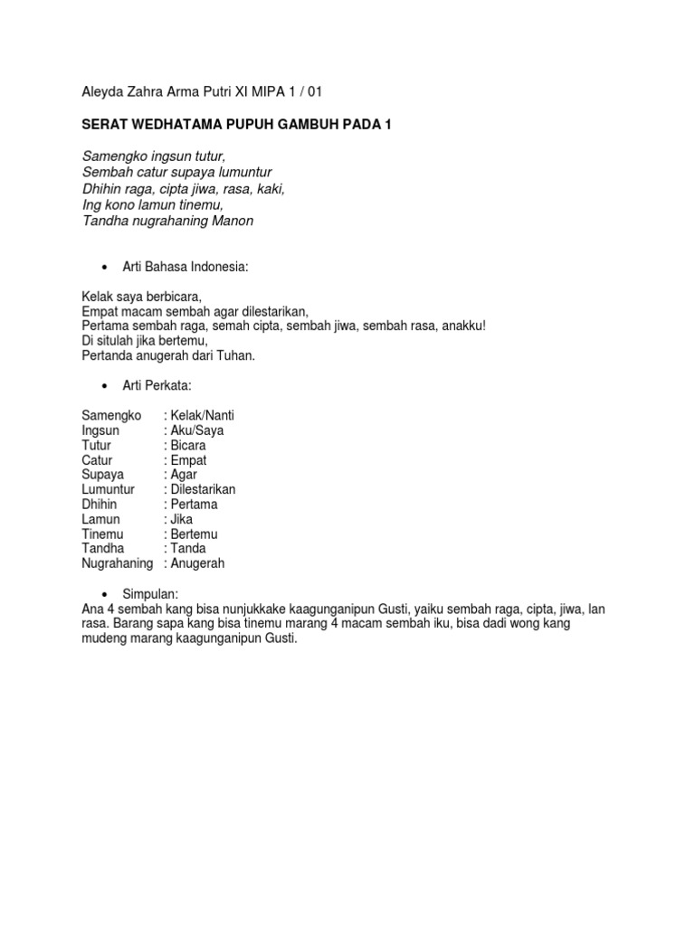 Serat Wedhatama Pupuh Gambuh Beserta Artinya. 7101288 Guru gatra.