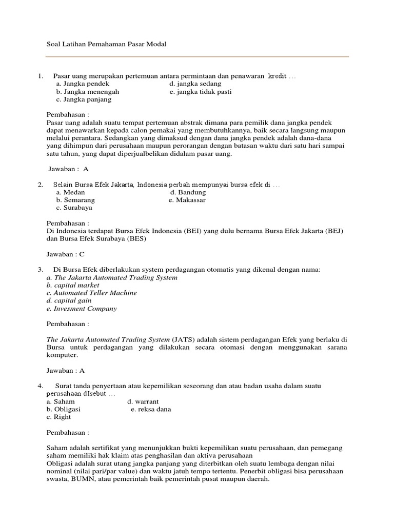 Contoh Soal Dan Jawaban Obligasi Dunia Sosial